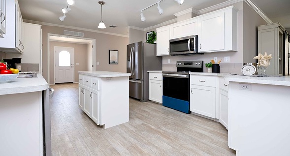 "Silverleaf Sanctuary" is a beautifully appointed 3-bedroom plus den, 2-bath new model home offering a spacious layout, practical design, and a desirable perimeter location that provides both added natural light and charm. A welcoming covered front porch and upgraded front door create a strong first impression, while the bright, open interior features wide-plank vinyl flooring throughout the main living areas, soft neutral tones, and an inviting sense of flow. The kitchen is both functional and stylish, showcasing crisp white cabinetry, brand new stainless steel appliances, generous counter space, and a large central island ideal for entertaining or everyday living. Open living and dining areas provide excellent flexibility for gatherings or quiet evenings at home. The generously sized primary suite is a serene retreat with a well-appointed en suite bath featuring dual sinks, ample storage, and a luxurious Roman soaking tub. Additional bedrooms and the den offer flexible space for guests, a home office, or everyday use. Parking on this home is limited to two vehicles, helping maintain the refined character of the community. With peace of mind provided by a builder warranty as well as warranties on appliances and central air, this move-in-ready new model presents an exceptional opportunity to enjoy relaxed, elevated living in one of Davie’s most desirable communities. Finally, like all homes in this lovely lakeside community, you will enjoy central air and heat, off-street covered parking, your own outdoor storage shed, professional landscaping and sprinkler system, and access to the community's extensive recreational amenities including enormous heated pool complex, new fitness center overlooking the pool and lake, tennis, basketball, clubhouse, sauna, relaxation room, lake recreation and more.